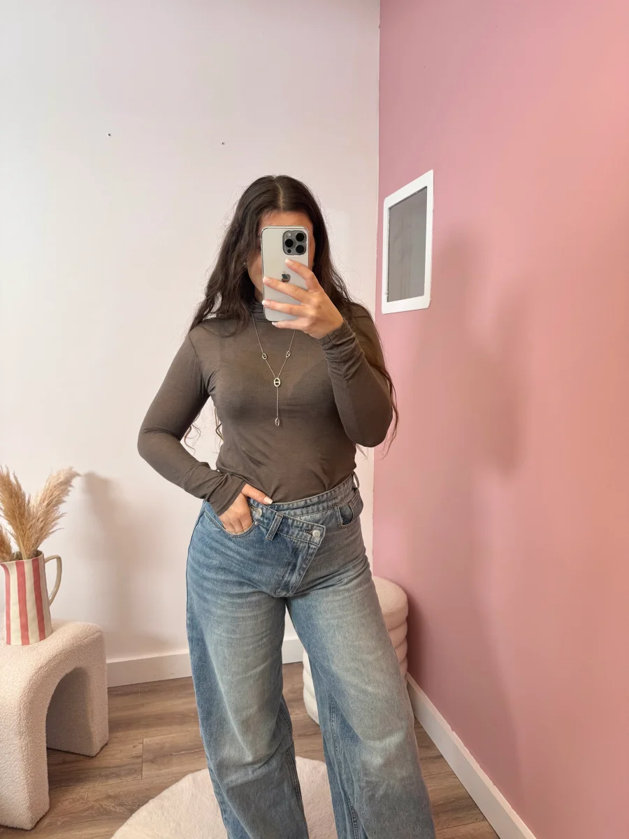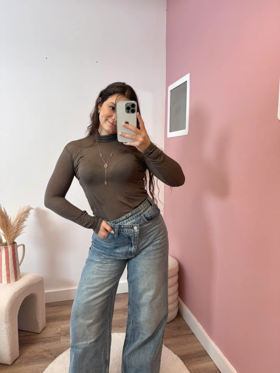 • Top en cachemire choco • Matière douce et très agréable • Effet transparent • Col roulé • Manche longue • 80% modal 20% cachemire • Made in Italiy • Existe également en noir