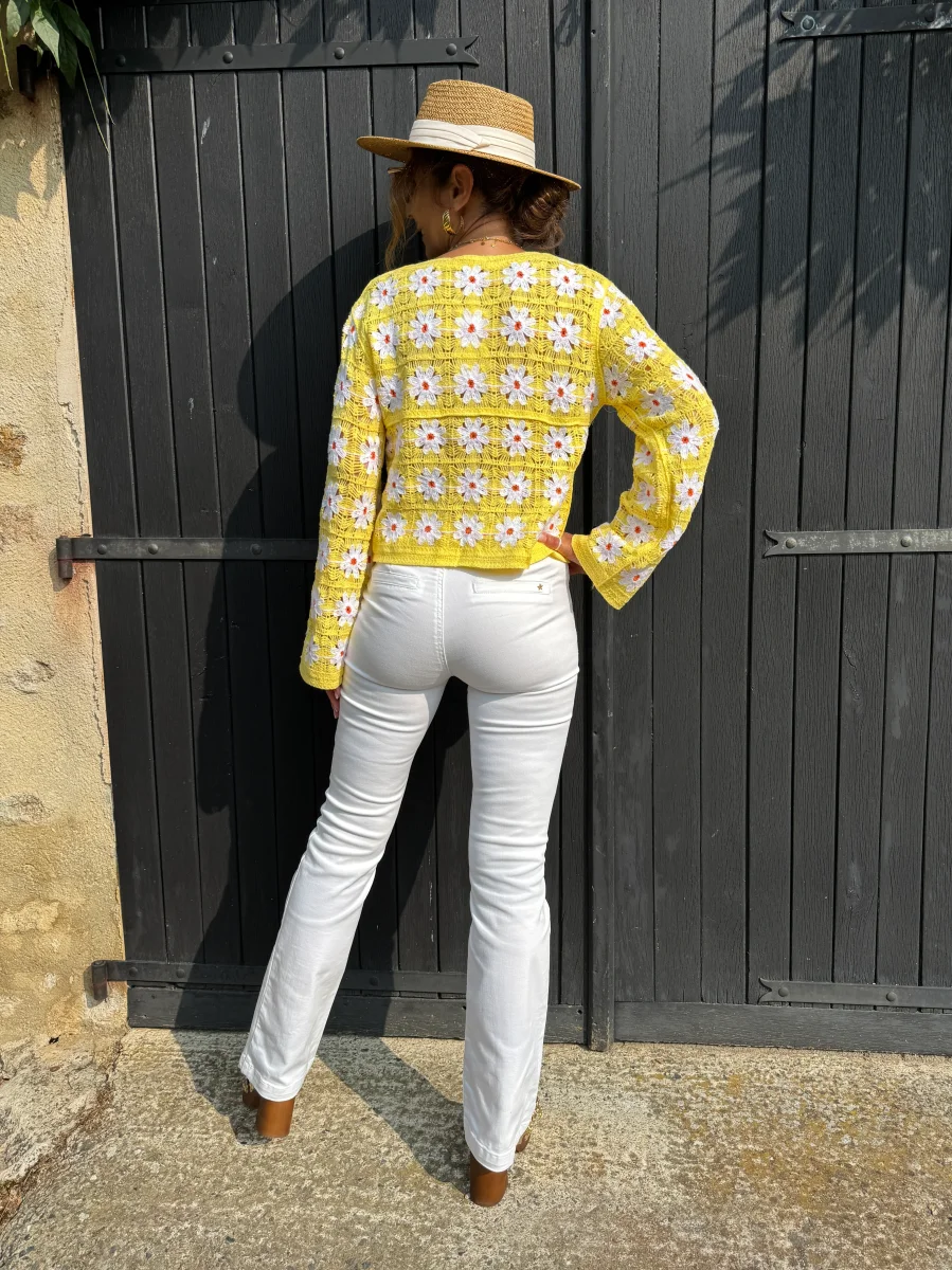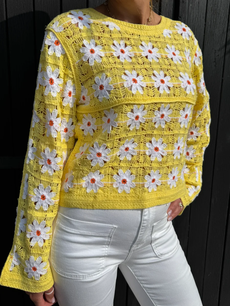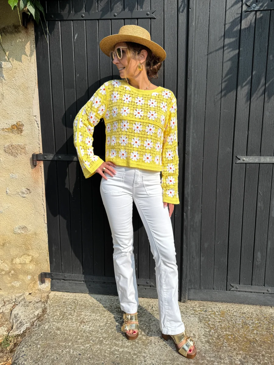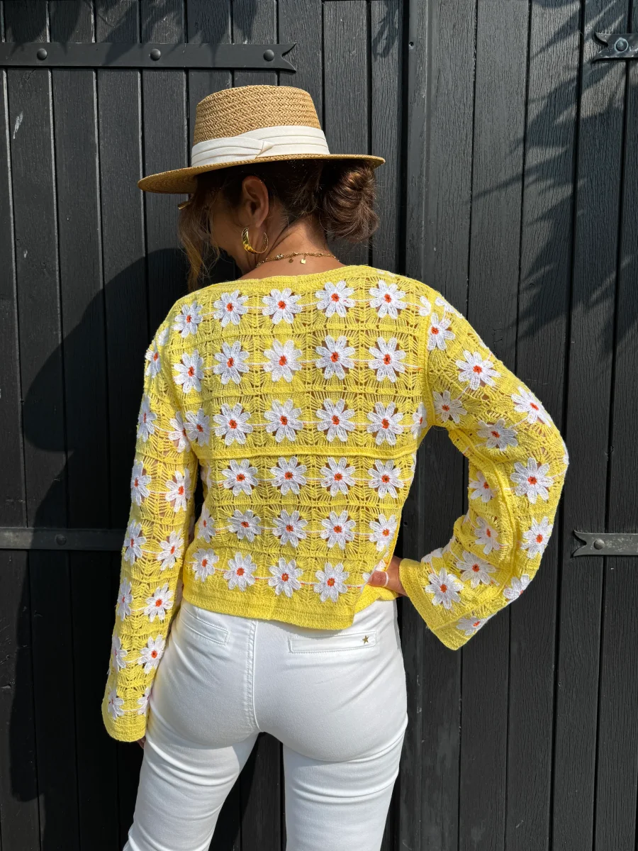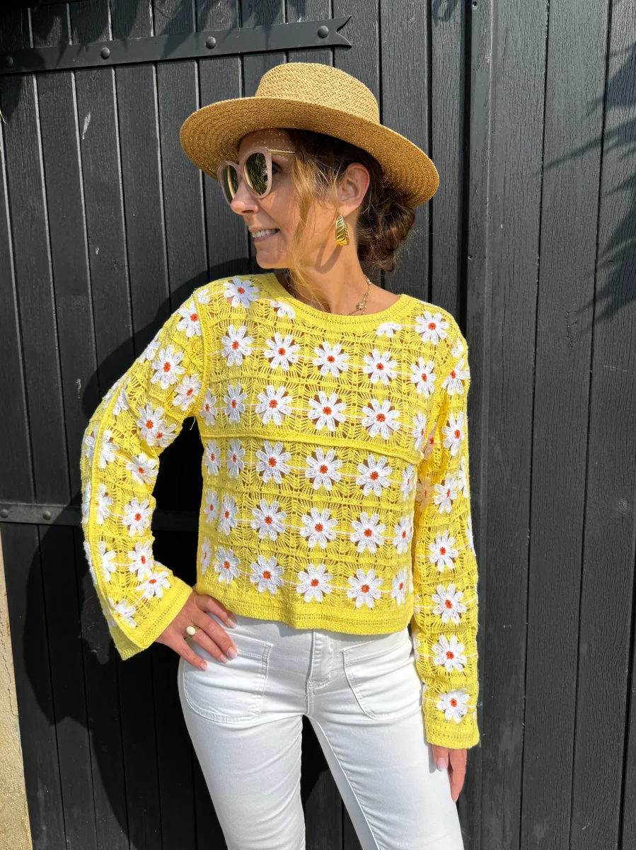 Top en crochet jaune avec marguerites PAULA