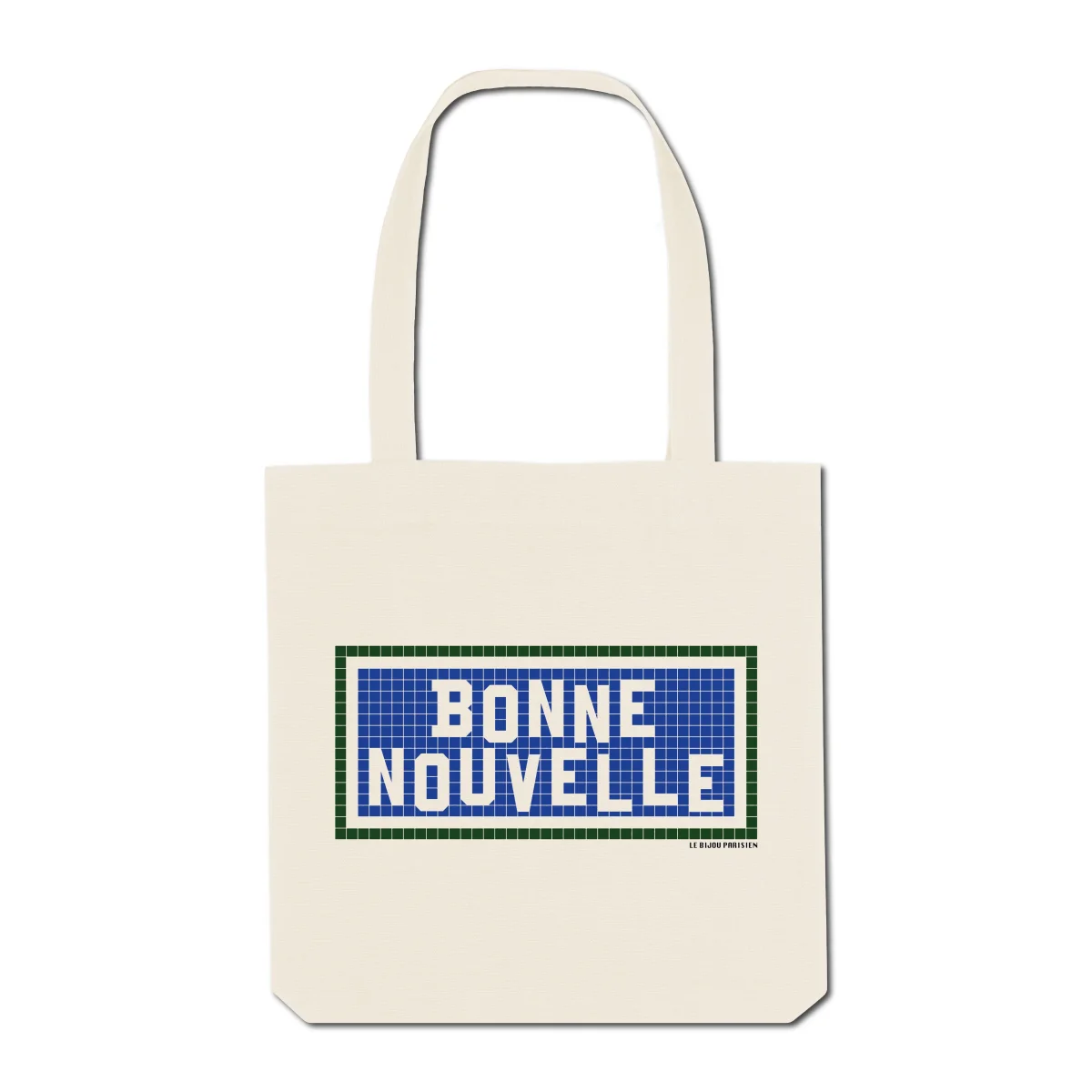 Craquez pour notre tote-bag en coton biologique, affichez votre amour pour la ville lumière et pour le quartier BONNE NOUVELLE avec ce design inspiré du métro parisien.
