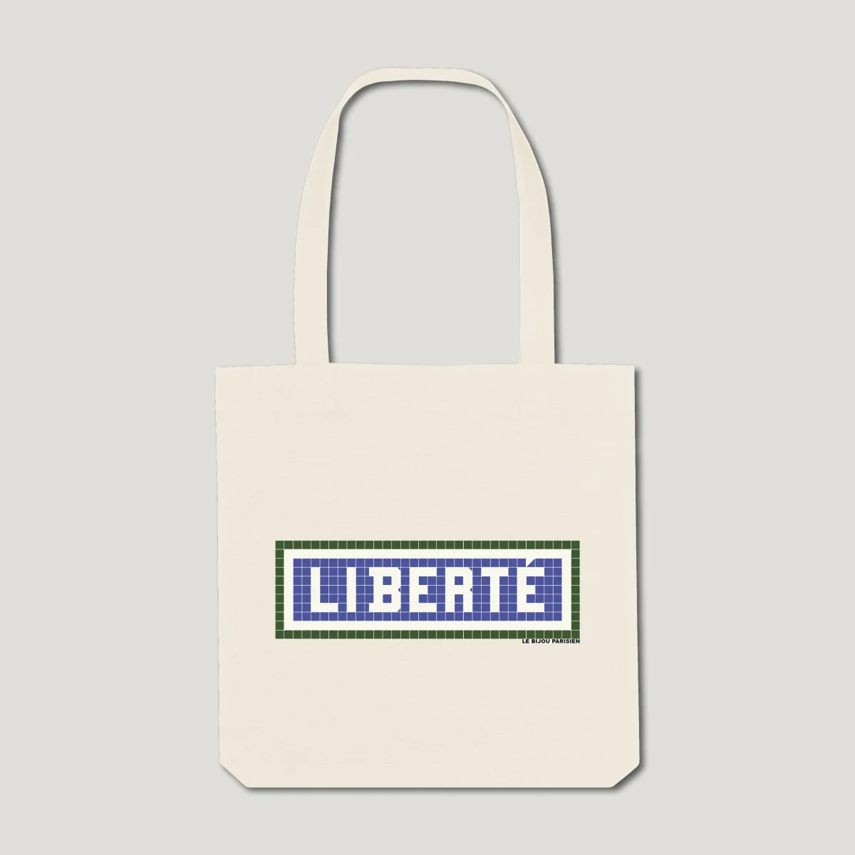 Craquez pour notre tote-bag LIBERTÉ en coton biologique, affichez votre amour pour la ville lumière avec ce design inspiré du métro parisien.