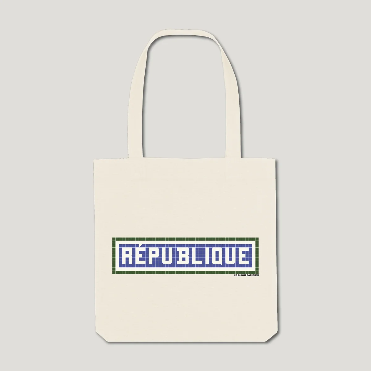 Craquez pour notre tote-bag en coton biologique recyclé, orné de la plaque de métro RÉPUBLIQUE.