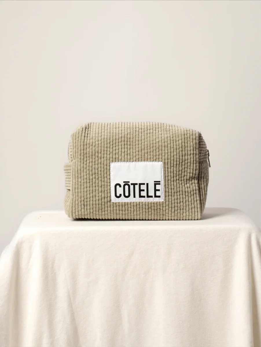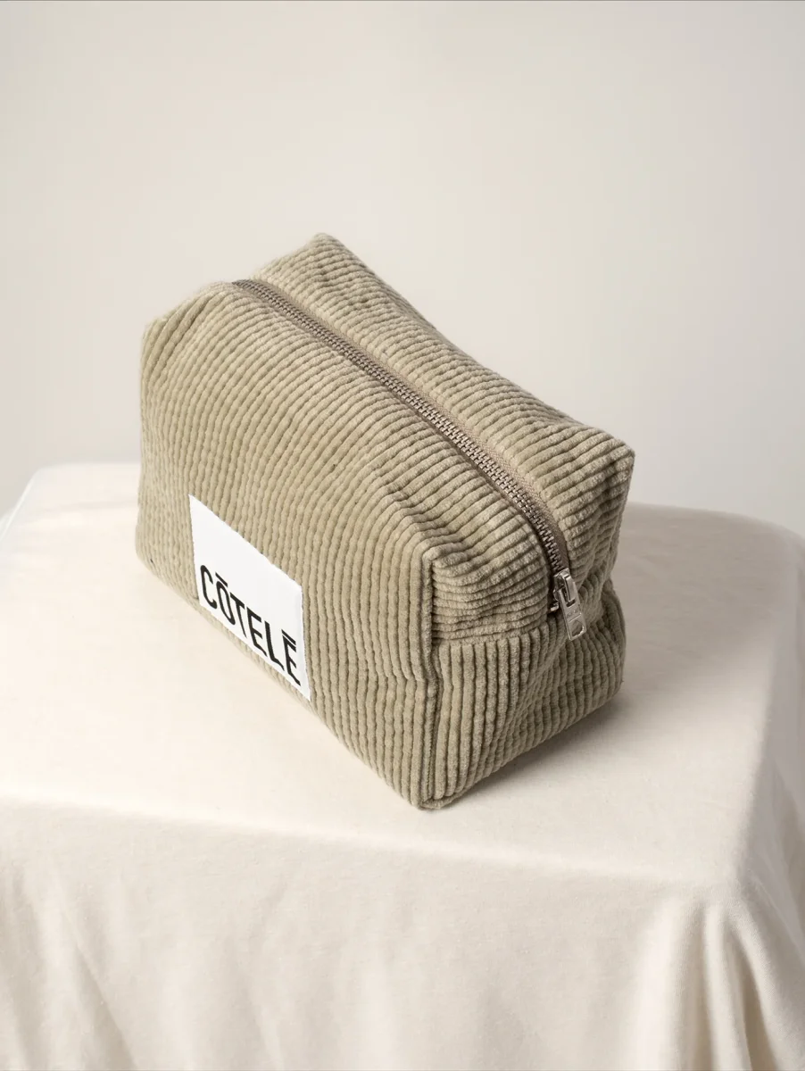 Trousse de toilette en velours côtelé.