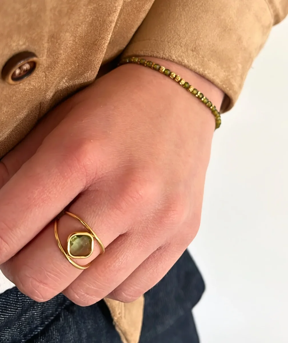 Alma verte – Bague dorée ouverte