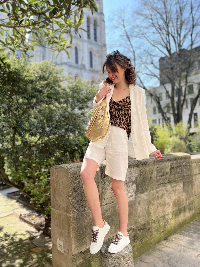 Nous avons longtemps connu le tailleur pantalon, mais pour cette saison nous l’avons décliné en tailleur bermuda. La petite touche « summer » c’est la matière 100% lin qui nous fait totalement craquer !