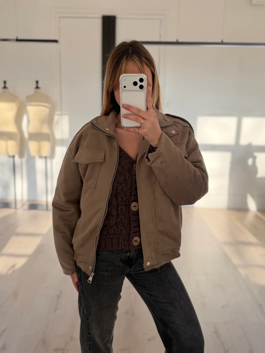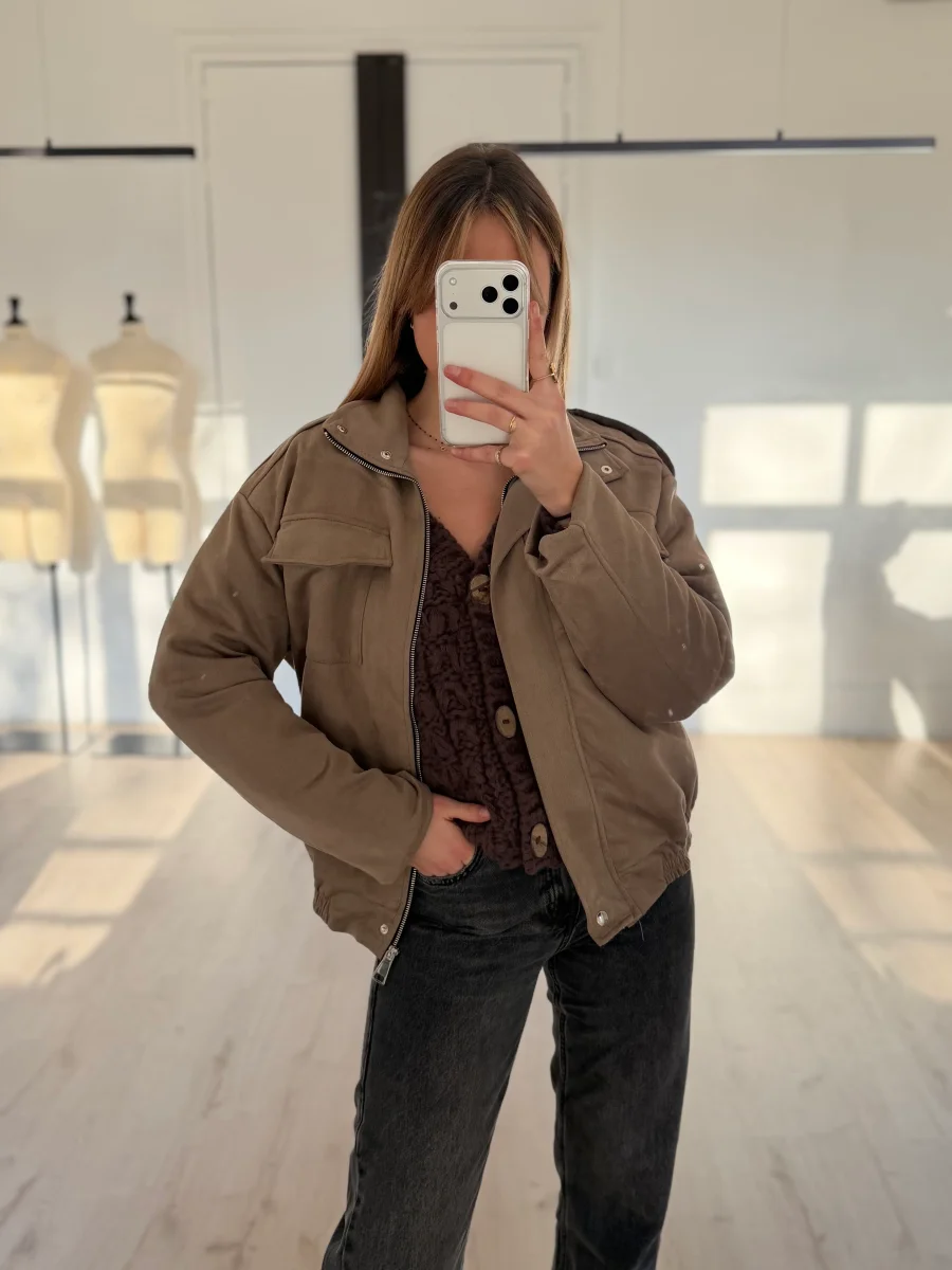 Taille unique Existe en beige, noir, chocolat Fermeture éclair + boutons pour fermer Poches sur les côtés ainsi que sur le devant Ok pour un 42 Fabrication ITALIE Composition : 90% Polyester / 10% Elastane