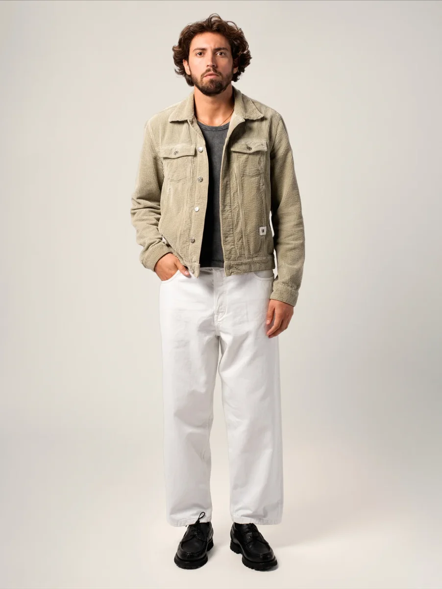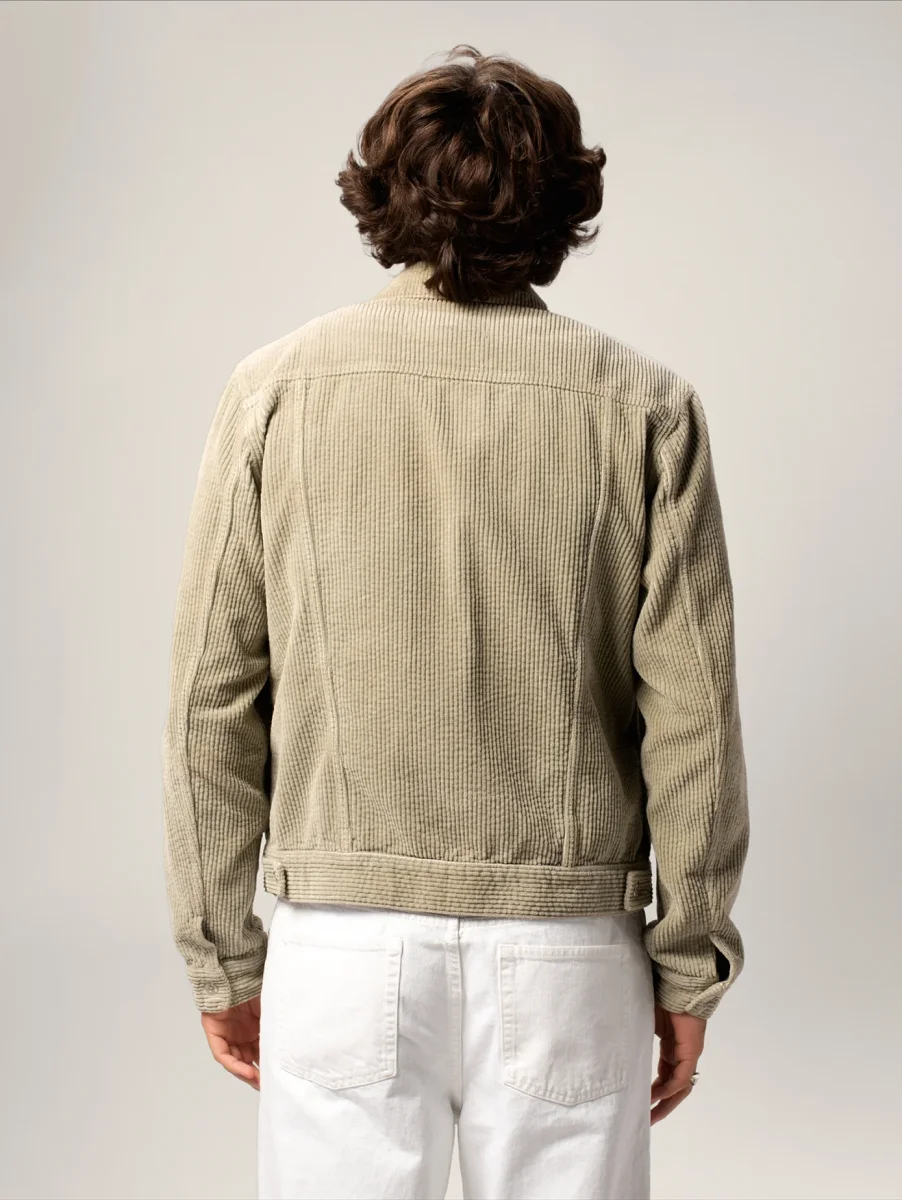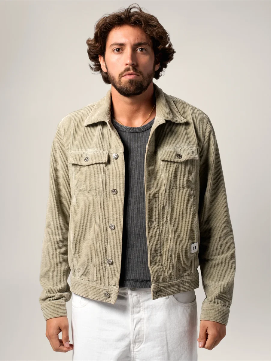 La Veste Trucker Jim, confectionnée dans un velours épais en coton biologique certifié GOTS, allie praticité, esthétique et durabilité, incarnant l’essence iconique et intemporelle du vestiaire masculin.