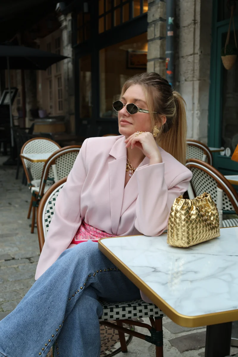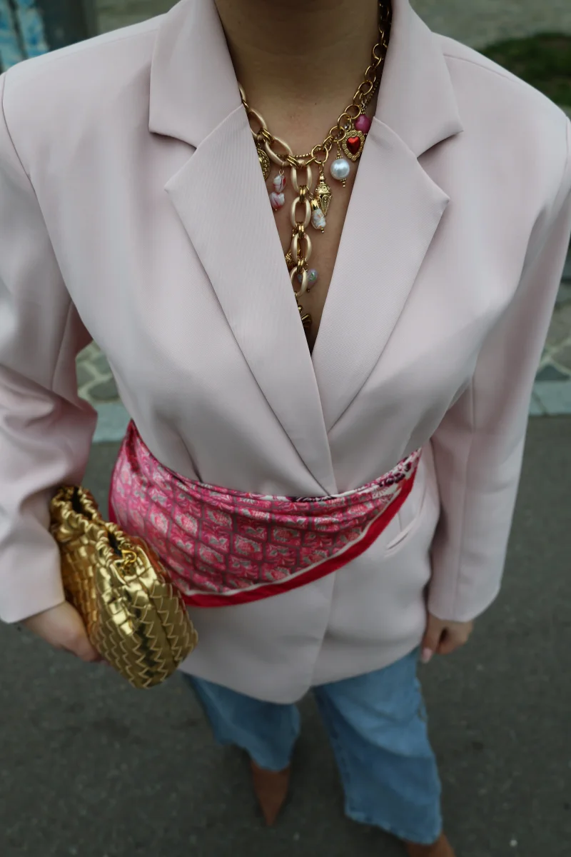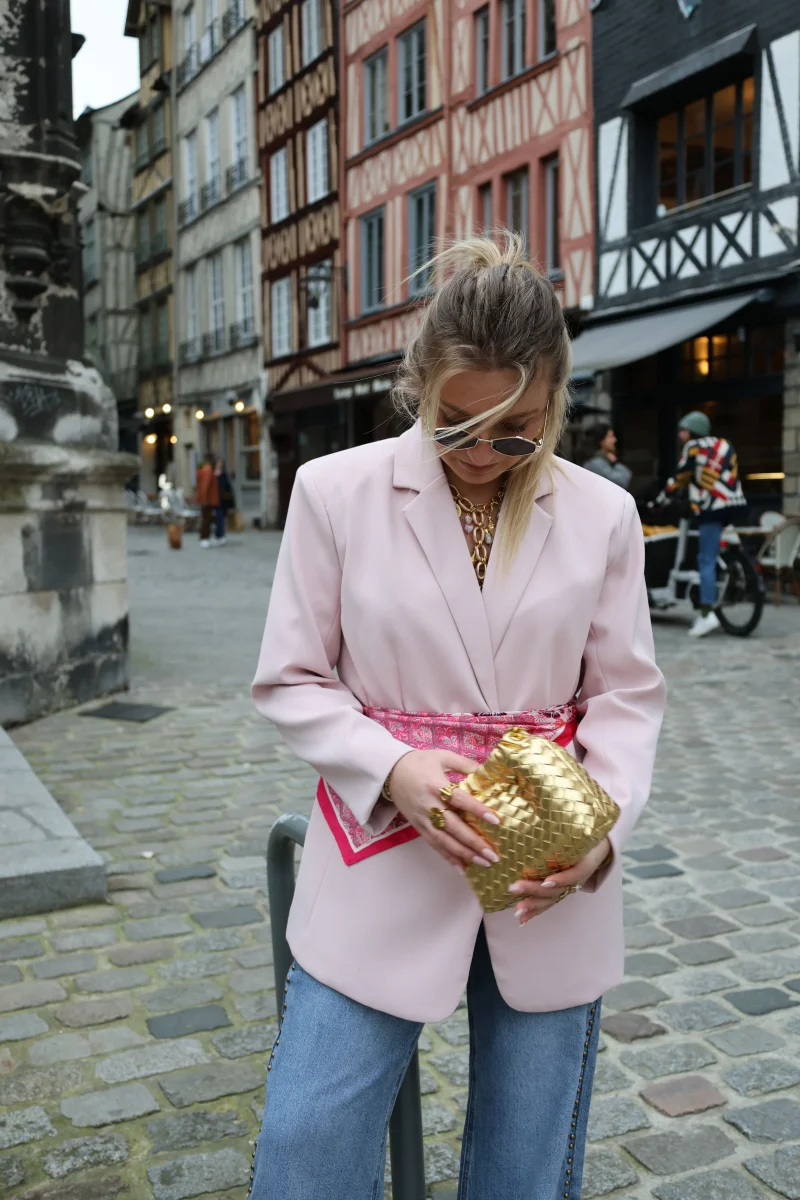 100% polyester prendre sa taille habituelle vendue sans le foulard ⚠️ coupe droite agreable à porter Couleur rose pâle