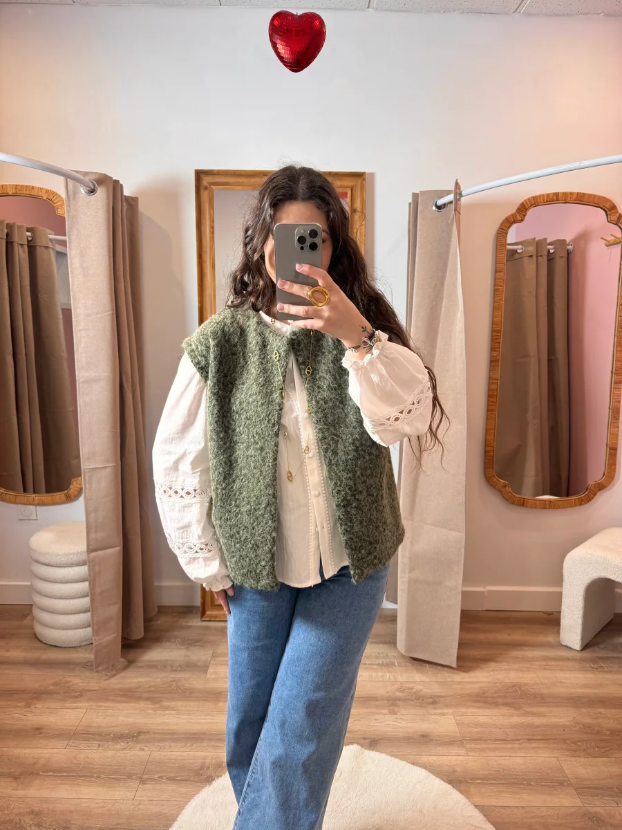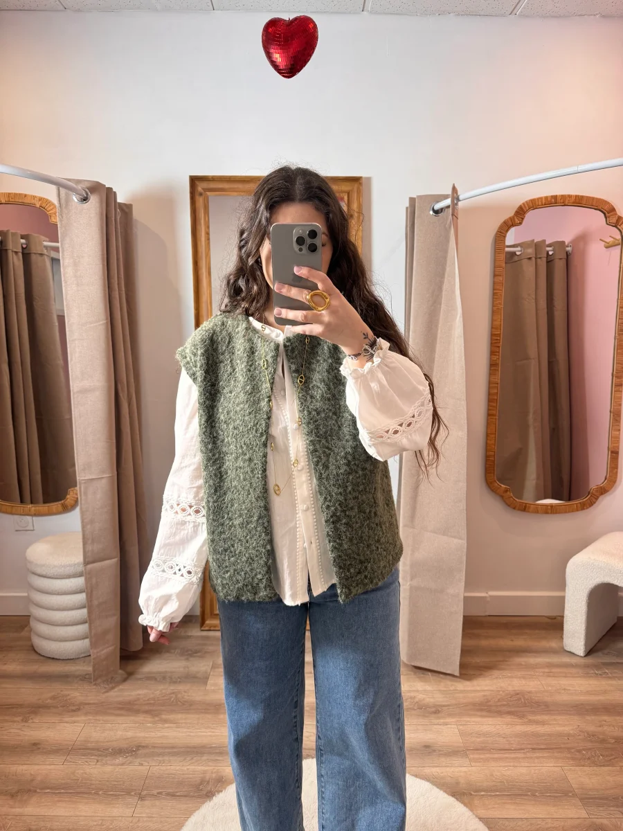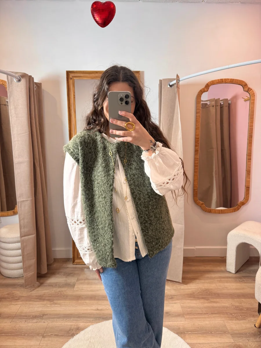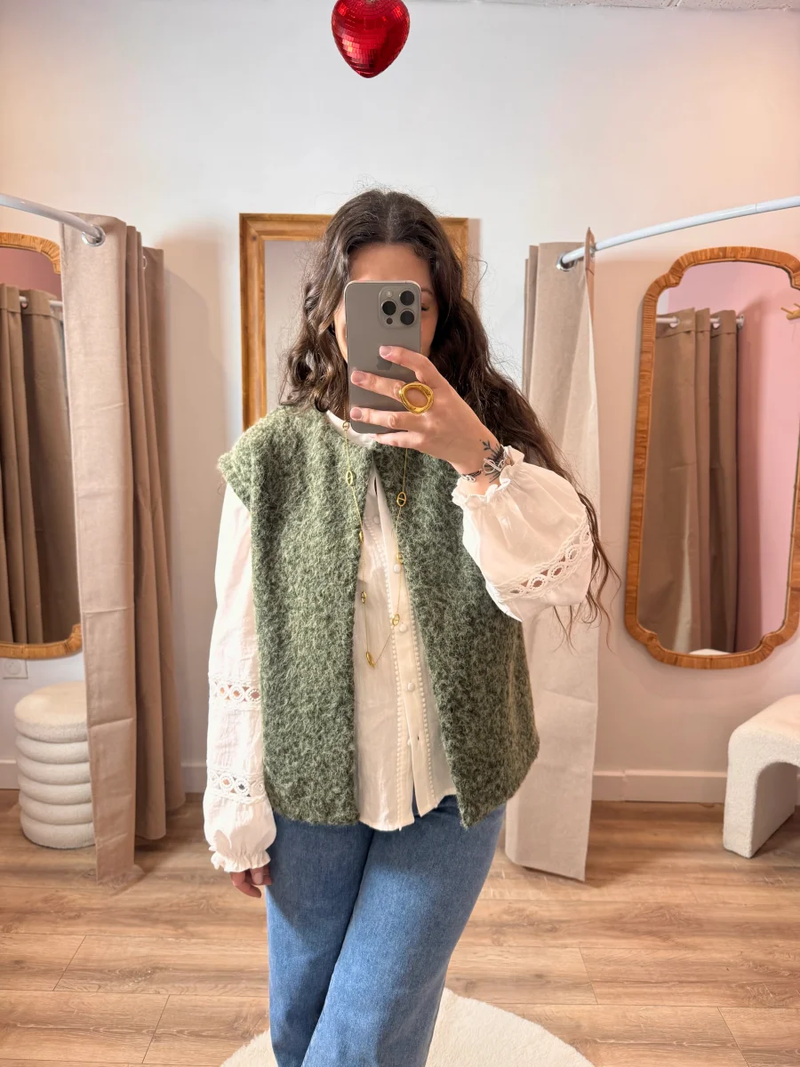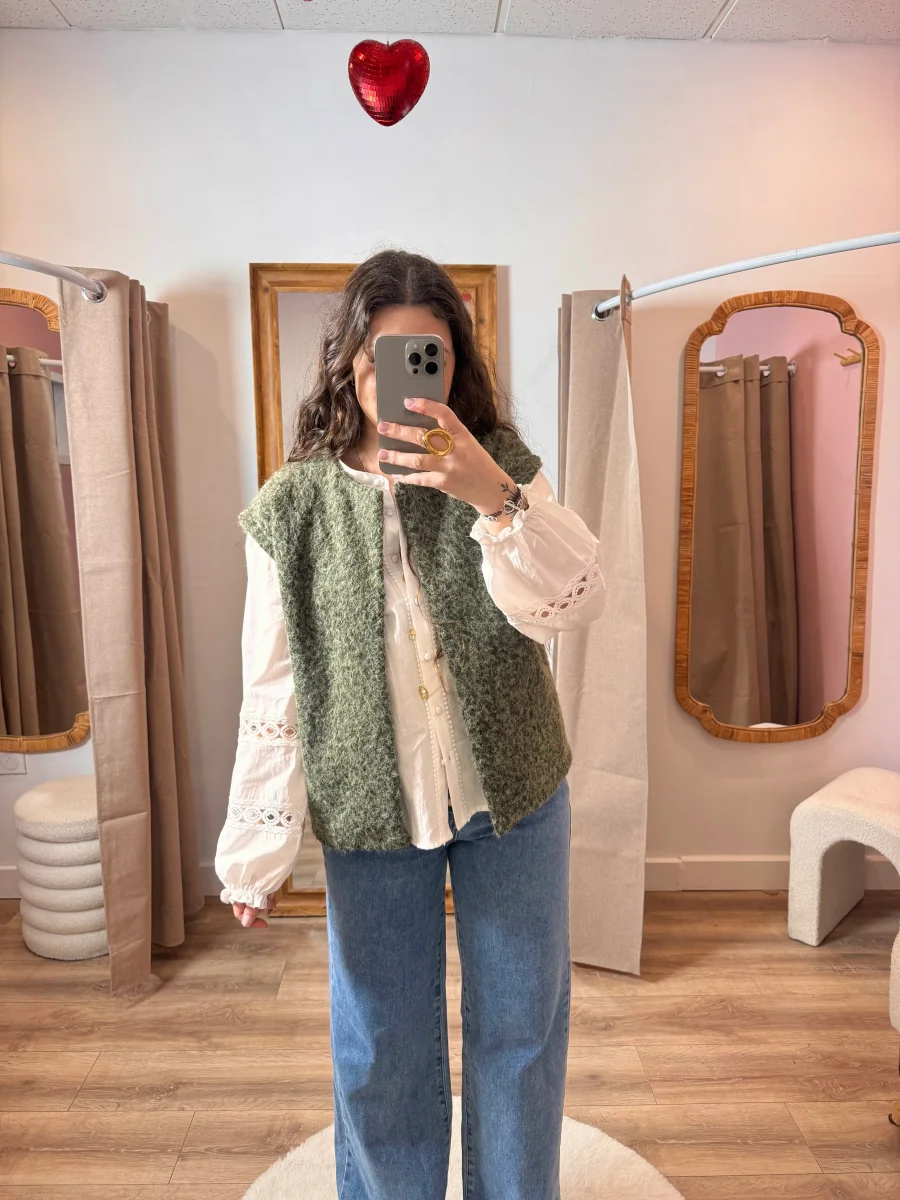 • Gilet sans manche • Kaki • Taille unique • 100% coton • Made in Italy • Existe en d’autres coloris