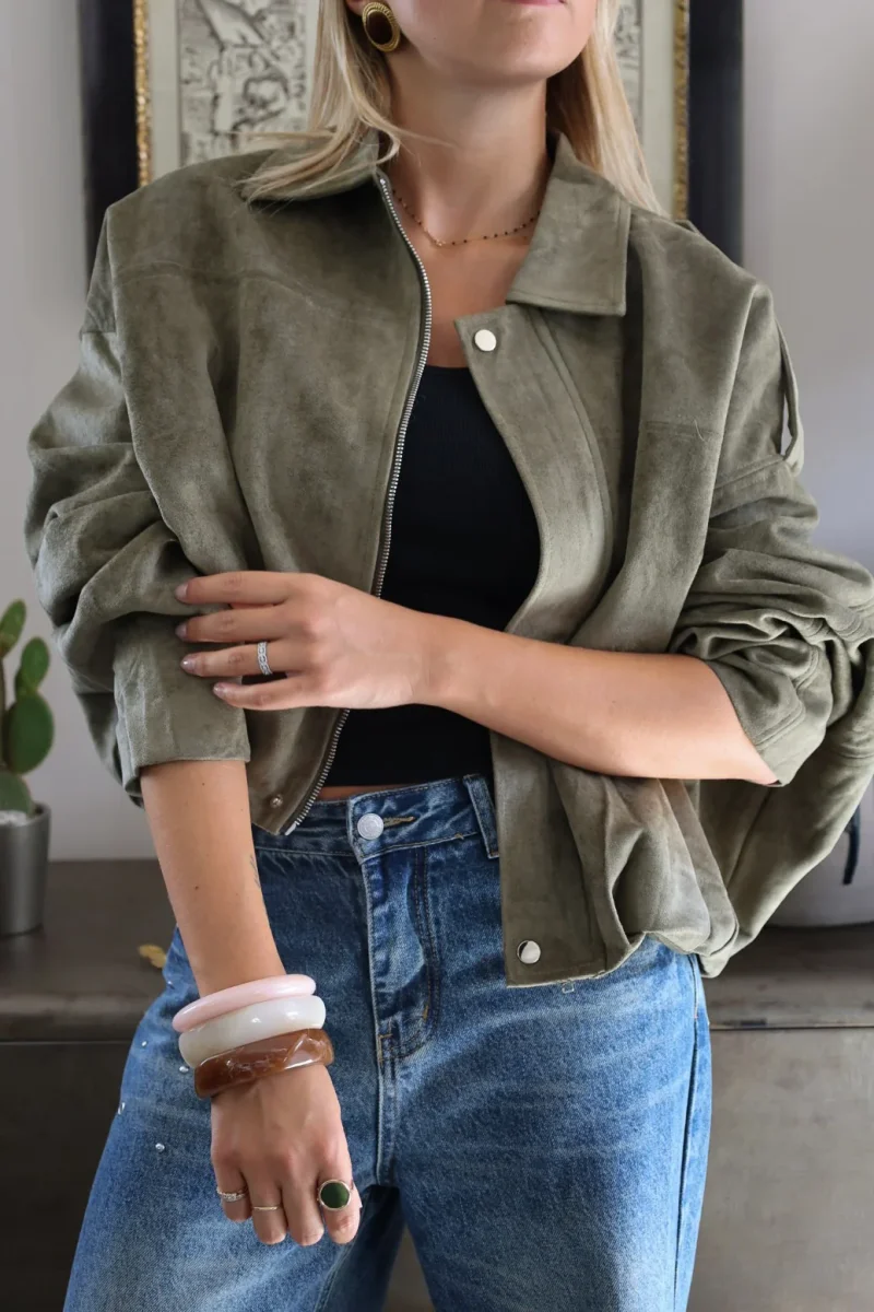 Blazer cuir vert pâle.