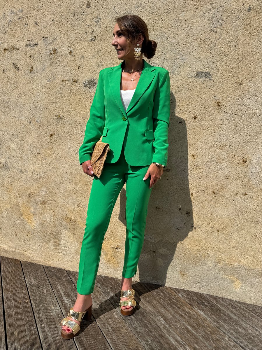 Notre veste DIANA de la marque Hippocampe est une pièce incontournable de votre garde-robe, alliant élégance et confort. Cette veste de taille ou costume, dans une magnifique couleur vert brésil, apporte une touche de fraîcheur et de sophistication à votre look. Avec sa coupe cintrée, elle met en valeur la silhouette tout en offrant un confort optimal.