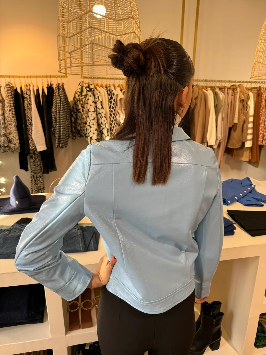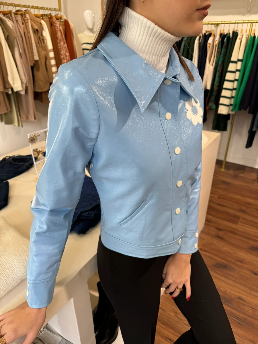 Plongez dans l’esthétique rétro-chic avec notre veste en vinyle ciel signée Hippocampe, une pièce incontournable pour les amateurs de style vintage. Fabriquée avec un similicuir vernis de haute qualité, cette veste incarne l’audace et l’originalité des années passées, tout en offrant un look résolument moderne. Cette veste est parfaite pour le printemps.