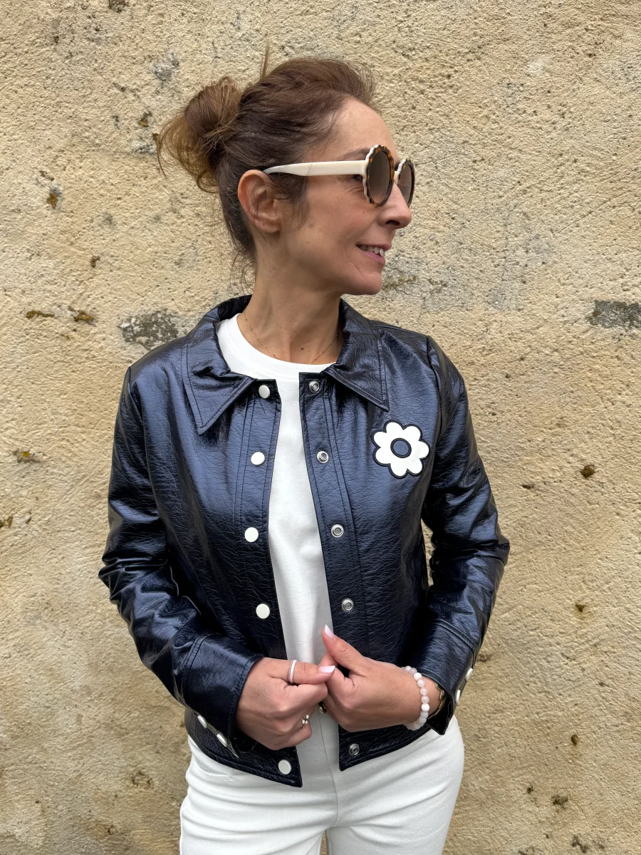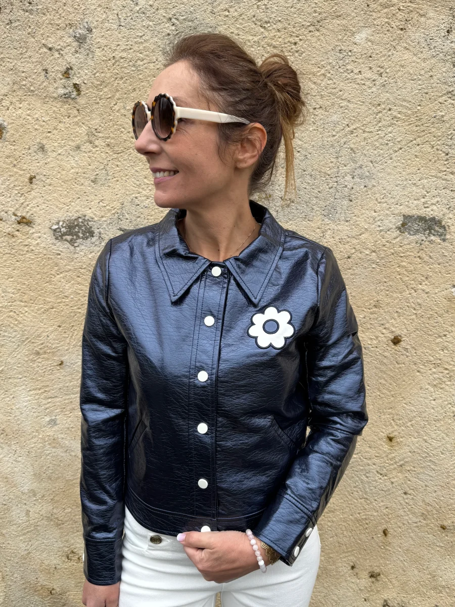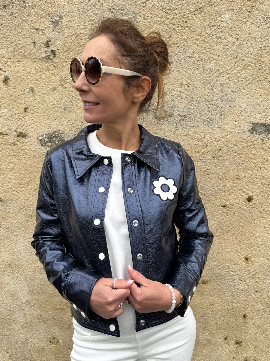 Veste vinyle marine paillettes DAISY Hippocampe