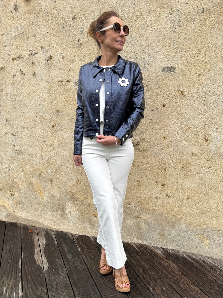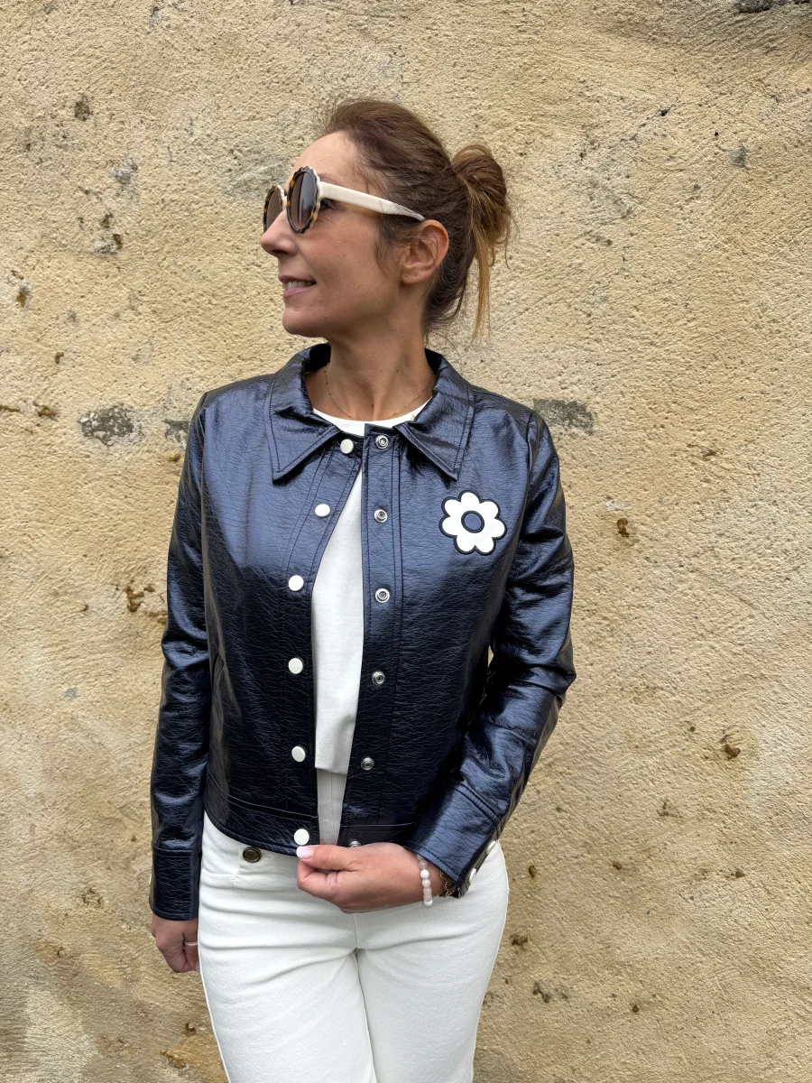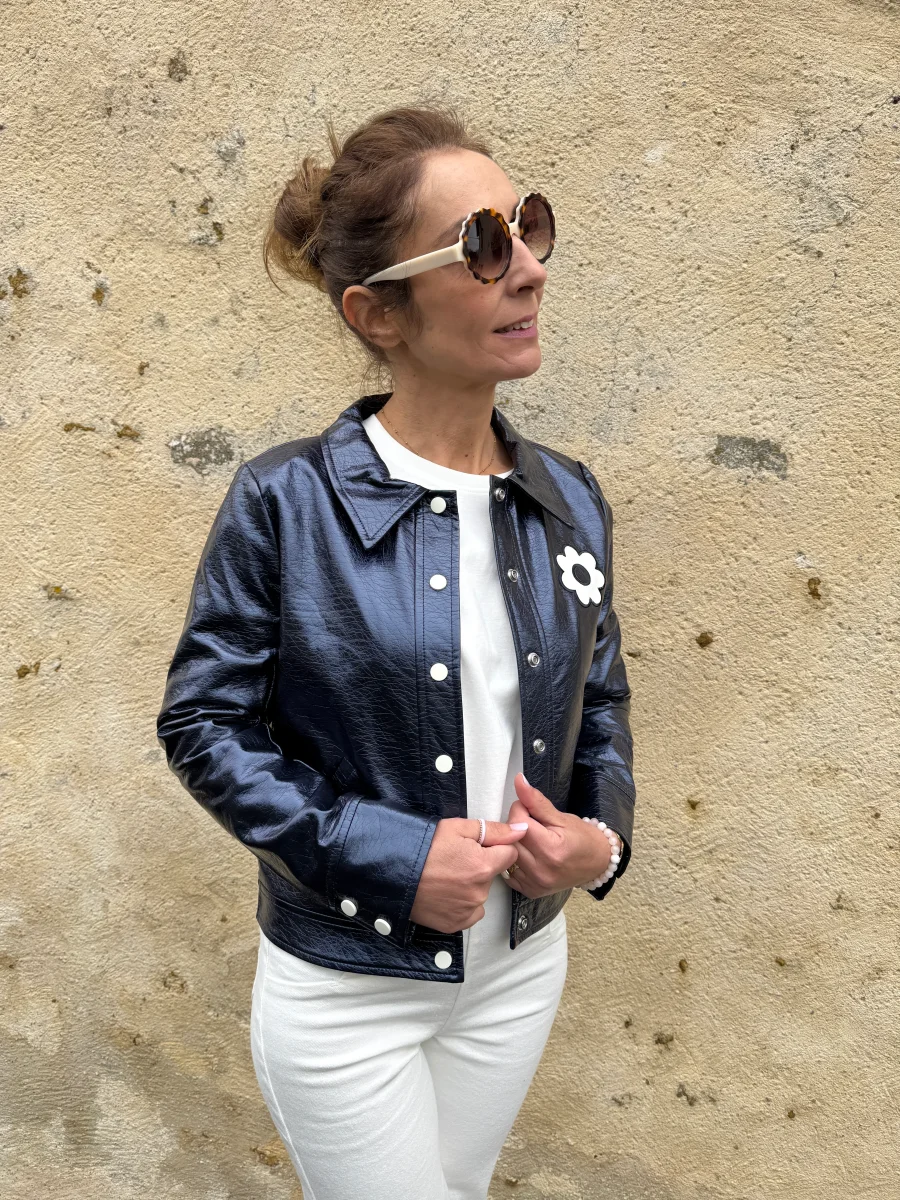 Veste vinyle marine paillettes DAISY Hippocampe