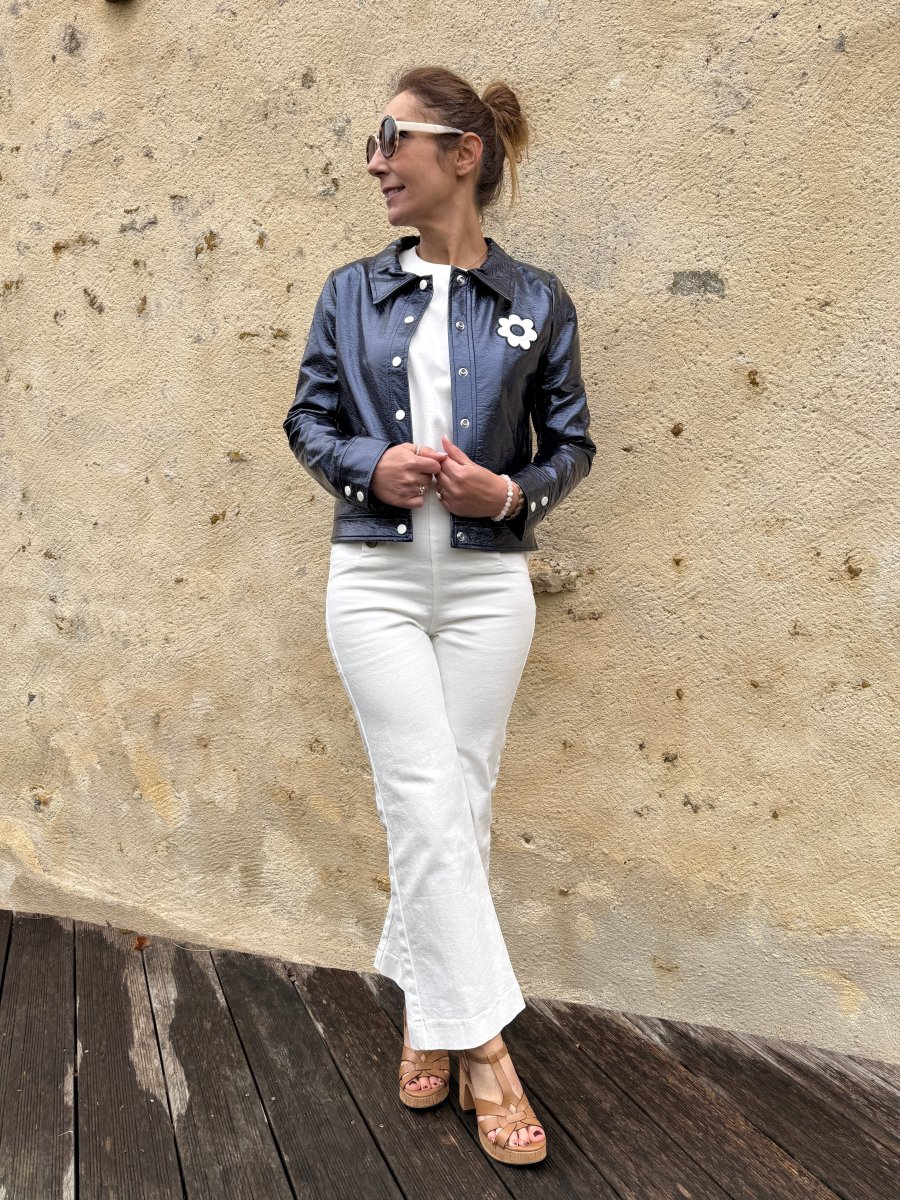 Plongez dans l’esthétique rétro-chic avec notre veste en vinyle marine paillettes signée Hippocampe, une pièce incontournable pour les amateurs de style vintage. Fabriquée avec un similicuir vernis de haute qualité, cette veste incarne l’audace et l’originalité des années passées, tout en offrant un look résolument moderne. Cette veste est parfaite pour le printemps. Sa matière […]